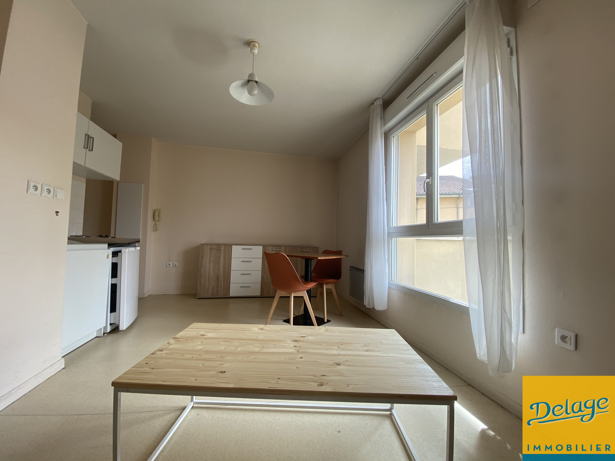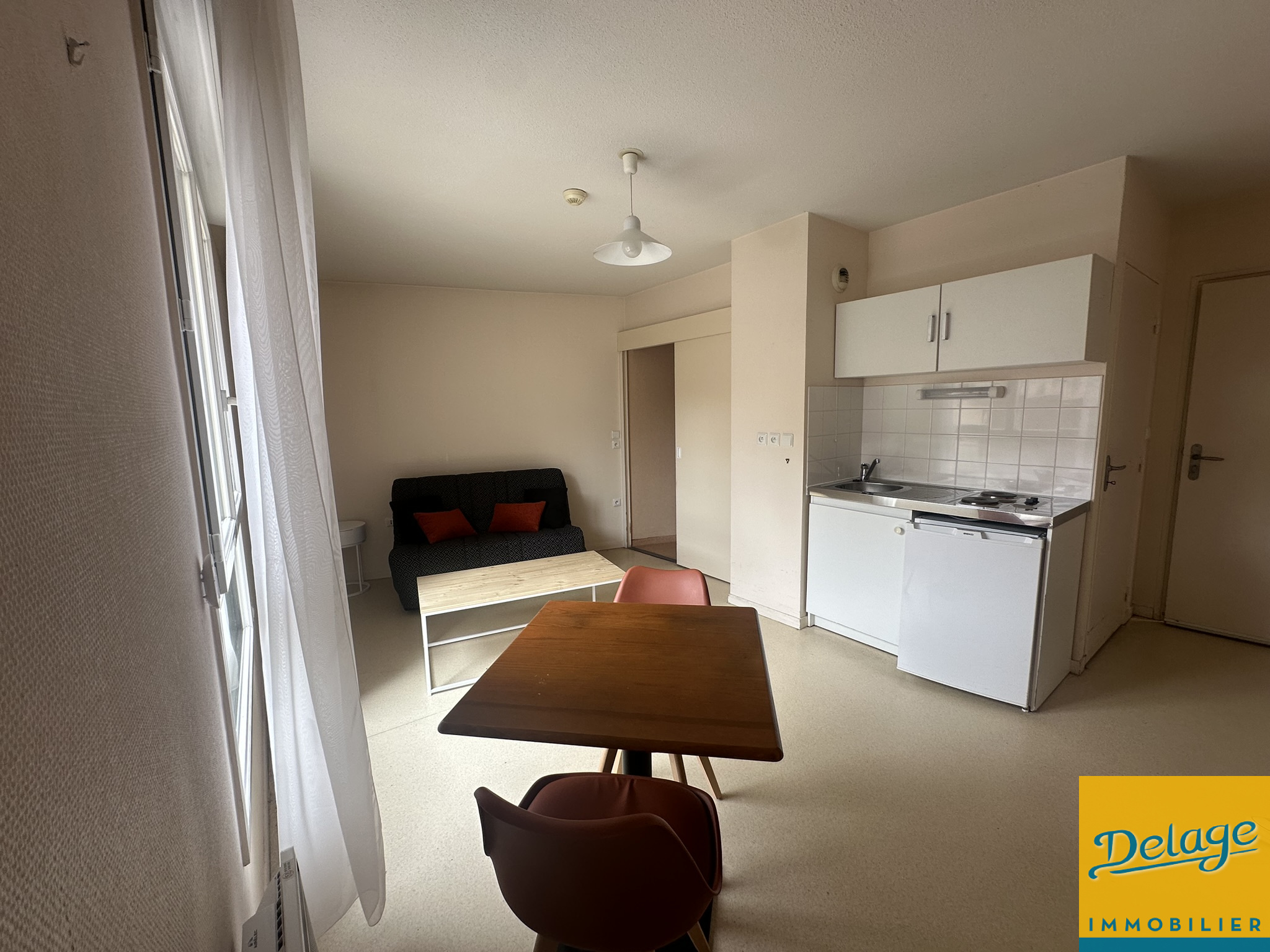 L’appartement se compose d’une entrée avec placard, d’une pièce de vie très lumineuse avec une cuisine ouverte semi-équipée, et d’une salle d’eau fonctionnelle. Son agencement optimisé ainsi que son mobilier neuf et remis au goût du jour sauront vous séduire.